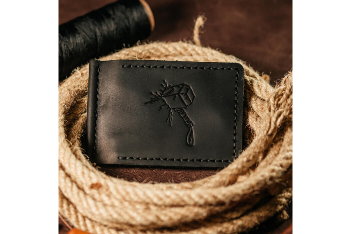 Цей чорний затискач для купюр хенд-мейд замінить вам гаманець або портмоне. Маленький зручний гаманець для грошей та кредитних карток - легко поміститися в кишеню, сумку, бананку або портфель.