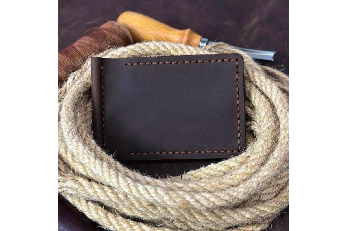 Цей коричневий затискач для купюр хенд-мейд замінить вам гаманець або портмоне. Маленький зручний гаманець для грошей та кредитних карток - легко поміститися в кишеню, сумку, бананку або портфель.