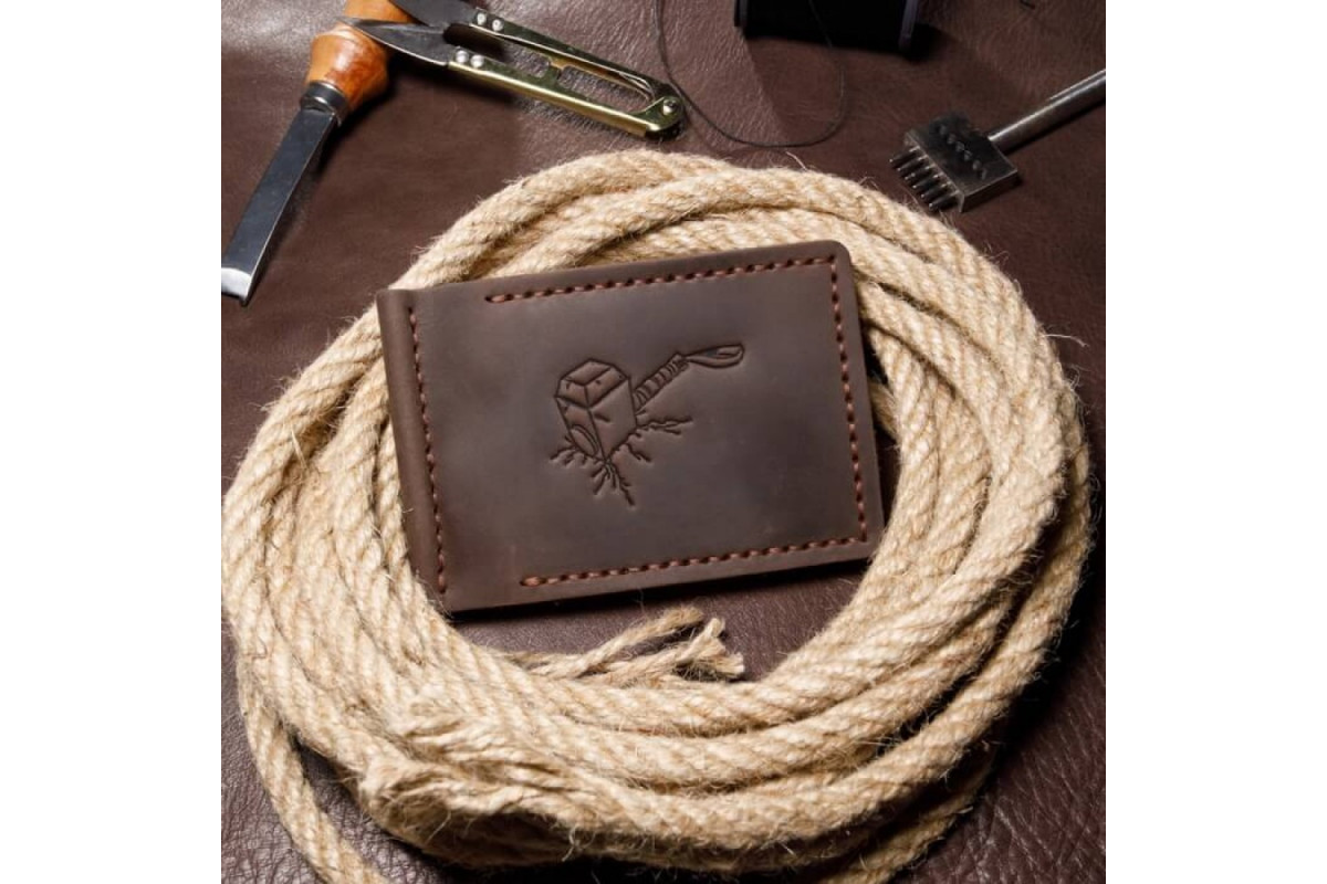 Цей коричневий затискач для купюр хенд-мейд замінить вам гаманець або портмоне. Маленький зручний гаманець для грошей та кредитних карток - легко поміститися в кишеню, сумку, бананку або портфель.